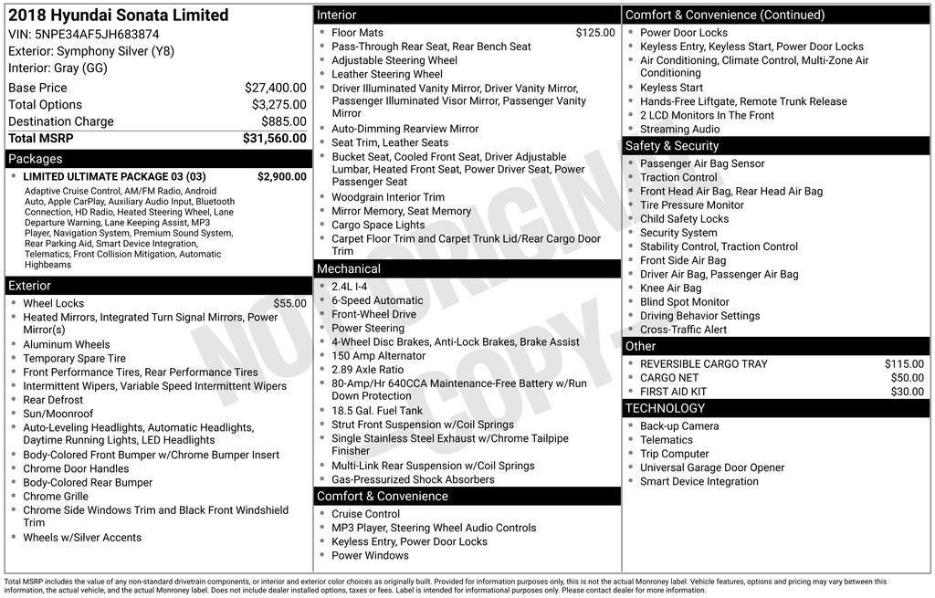 Whether commuting to the office or embarking on a weekend getaway, this 2018 Hyundai Sonata Limited is the perfect companion. Experience the exceptional value, refined style, and cutting-edge technology that make this sedan a standout in its class. Visit our showroom today to take this Sonata for a test drive and discover how it can elevate your driving experience.