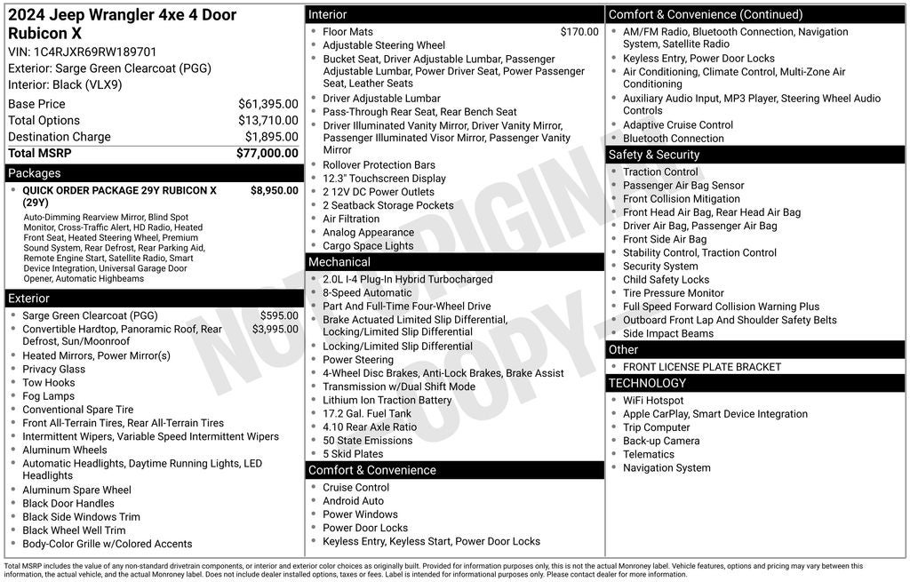 2.0L I4 DOHC. Sarge Green Clearcoat 2024 Jeep Wrangler Rubicon X 4xe 4WD 8-Speed Automatic 2.0L I4 DOHC